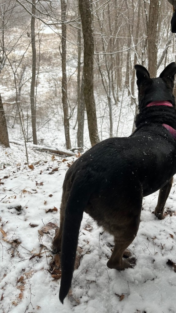 But Feebee? She loves it. Her winter coat has grown longer and thicker, with just a hint of curl around her neck. She’s a snow dog and she’s ready for action.